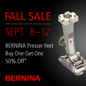 Wonderful, wonderful gifts with purchase when you choose a BERNINA with embroidery capabilities Sept 13-19. Special financing is available! Come in for details!